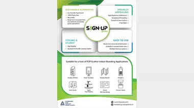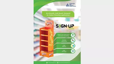 The Sign-Up Green material is robust and durable, with a smooth, bright and opaque surface. The board can be easily shaped into different forms, and provides an excellent base for printing colourful graphics, letting the brand ramp up its visibility in style.