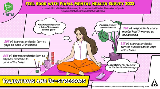 In India, attitudes towards mental wellbeing have been gradually evolving with increased awareness towards reducing the stigma that is commonly associated with this issue. This World Happiness Day, insights from the Feel Good with Fiama Mental Wellbeing Survey 2023* sheds light on GenZ redefining their outlook towards a happier state of mind and a sense of contentment. Commissioned with NielsenIQ, the survey covers a gamut of beliefs, behaviours and major stressors for GenZ and Millennials towards mental health while identifying de-stressors that bring them happiness and a sense of calmness.