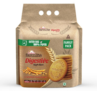 ITC Sunfeast Farmlite, a range of wholesome biscuits from ITC Foods, has launched its new offering Sunfeast Farmlite Digestive Biscuit Family pack in 100% outer paper bag packaging. An industry first innovation in packaging, this move establishes the brand as a trendsetter in the biscuit category.